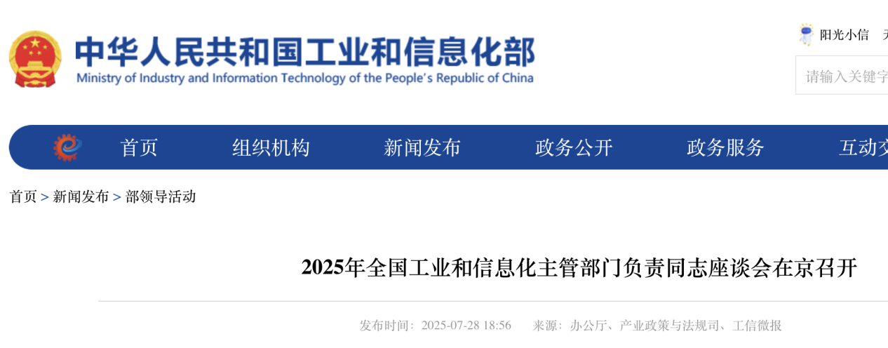 【環球網科技綜合報道】7月29日消息,根據工信部官網信息,全國工業和信息化主管部門負責同志座談會日前在京召開。