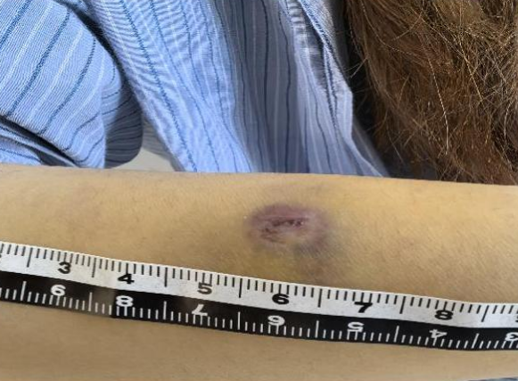 小麗的手臂立馬出現了一個圓形傷口