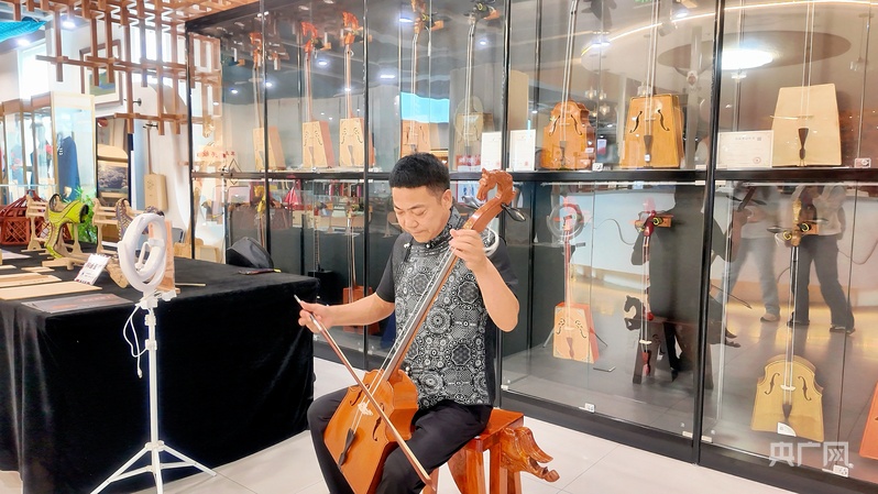 “我們最開始是兩個人做,到現在已經有了20名員工,80%都是我們村裏的農牧民。包括我在內現在有四名大學生,我們每年都給村裏捐贈一些樂器,再找老師給農牧民免費教授馬頭琴的演奏技藝,包括來這裏展售,也是希望通過馬頭琴製作技藝讓更多的人瞭解蒙古族的文化。”