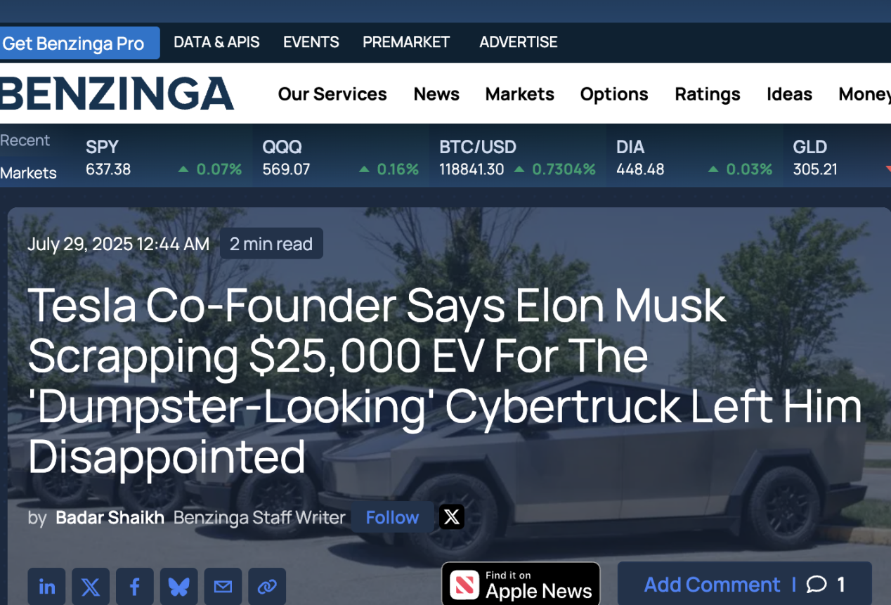 特斯拉聯合創始人痛批馬斯克“戰略倒退”:Cybertruck“像垃圾桶”