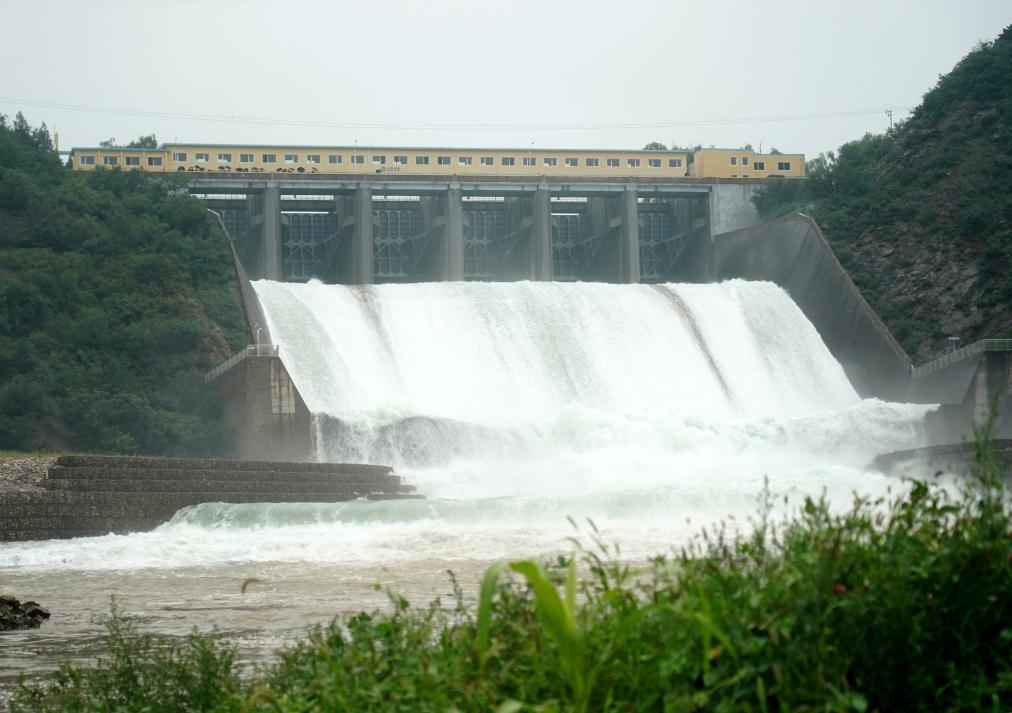 7月27日,密雲水庫向下遊泄流。潮白河干流密雲水庫7月27日發生1959年建庫以來最大入庫洪水。新華社記者 張晨霖 攝