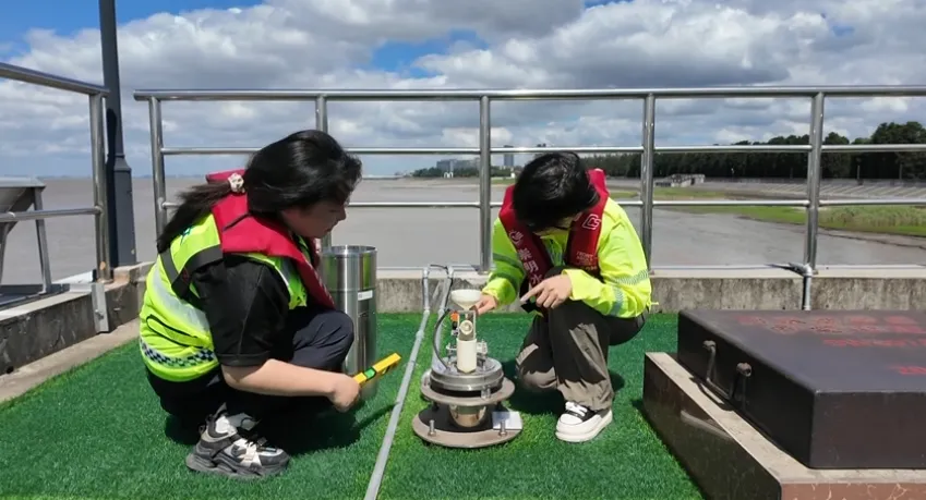 工作人員開展對水文監測站點和監測設備的檢修和維護。“上海崇明”微信公眾號 圖
