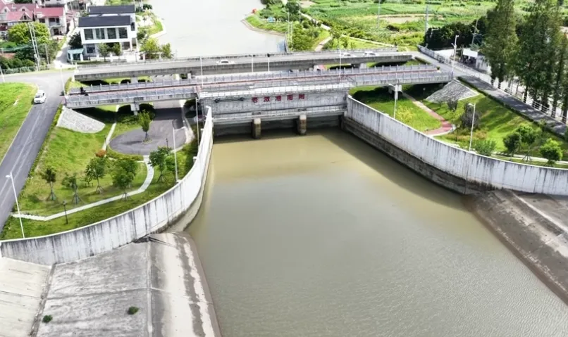 7月28日下午起,崇明三島38座沿江水閘根據市防汛辦調度指令,開始預排預降內河水位。“上海崇明”微信公眾號 圖