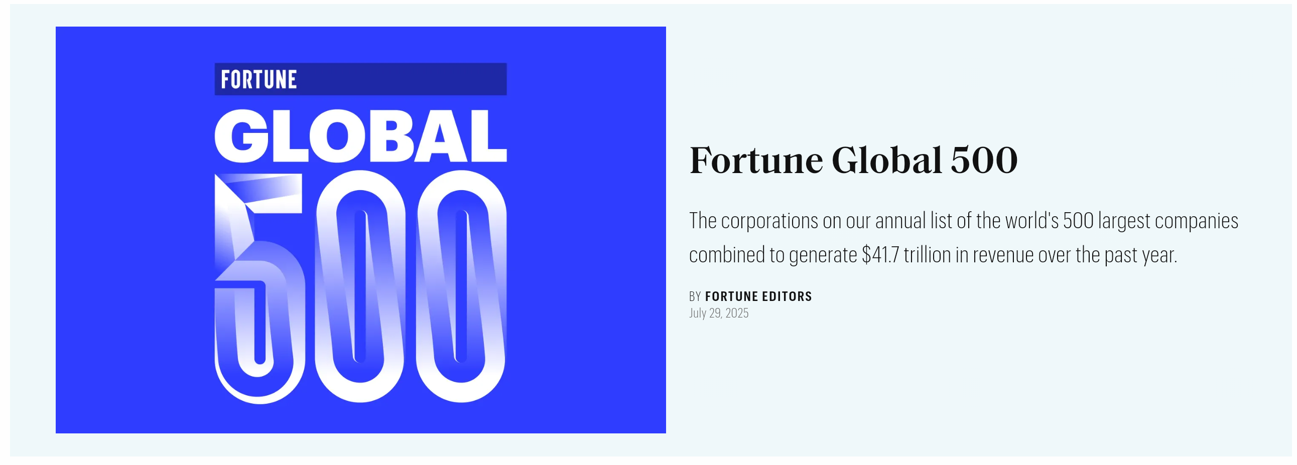 《財富》世界500強榜單以年度營業收入為核心指標,覆蓋全球上市與非上市企業,是衡量企業綜合實力的重要標尺。2025年上榜企業總營收達41.7萬億美元,超過全球GDP的三分之一。(趙華)