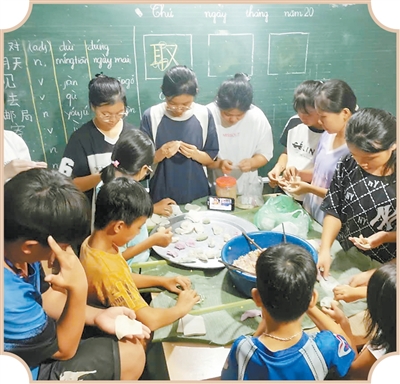 在閉氏映的中文課堂上,越南學生學習包餃子。