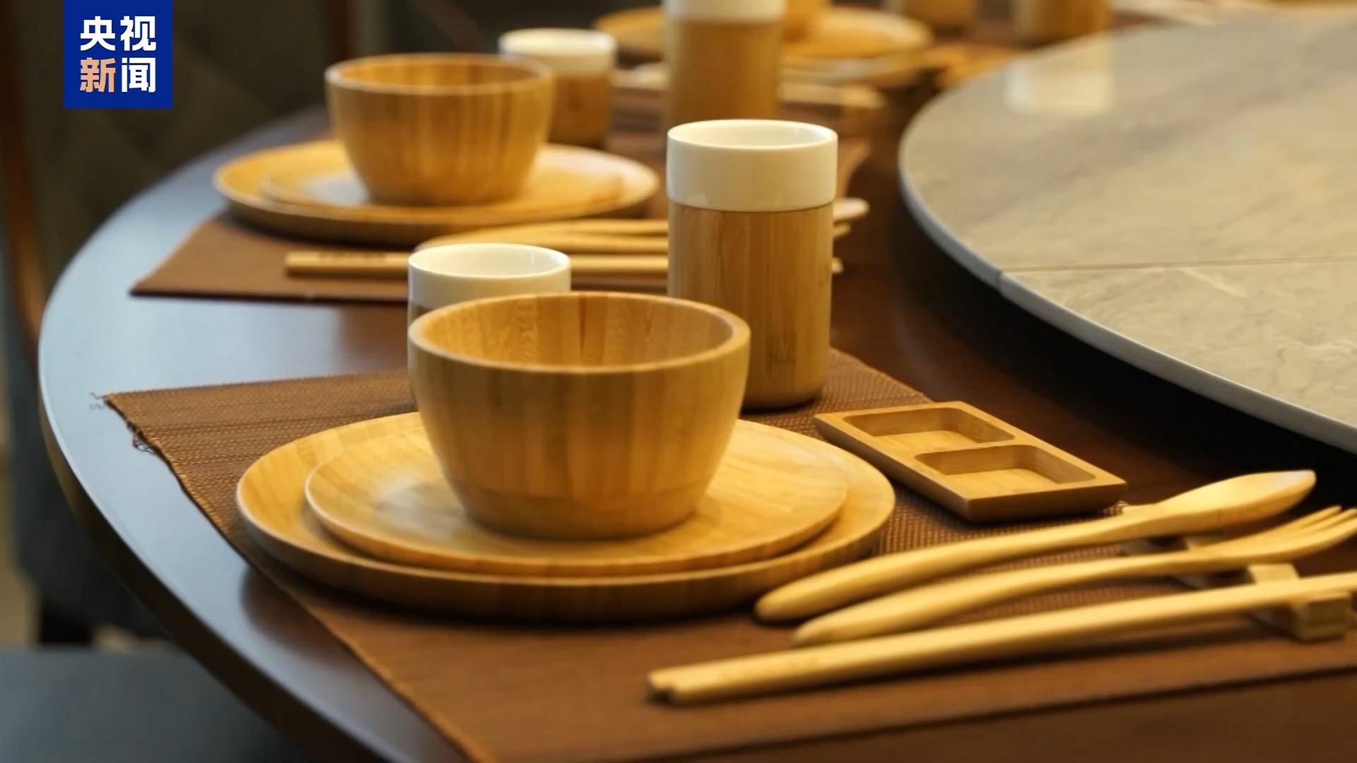 *中國林業科學研究院首席科學家、國家竹產業研究院院長 於文吉:*煉製1噸鋼可能要排放六七噸二氧化碳,如果是用我們以竹材為原材料做的“竹鋼”,它的碳排放實際上是負的,負43公斤,是一個負碳材料。不光是説以竹代塑,還是要再拓展一下,以竹代鋼,以竹代木,以竹代糧,以竹產能。