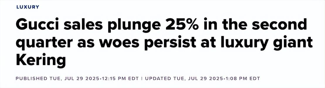 【環球網財經綜合報道】據CNBC等外媒報道,法國奢侈品巨頭開雲集團近日公佈的財報顯示,今年第二季度集團銷售和利潤均出現兩位數下滑,降幅超過華爾街預期,延續了奢侈品行業需求疲軟的頹勢。集團核心品牌古馳(Gucci)銷售降幅進一步擴大,凸顯高檔奢侈品市場的嚴峻形勢。