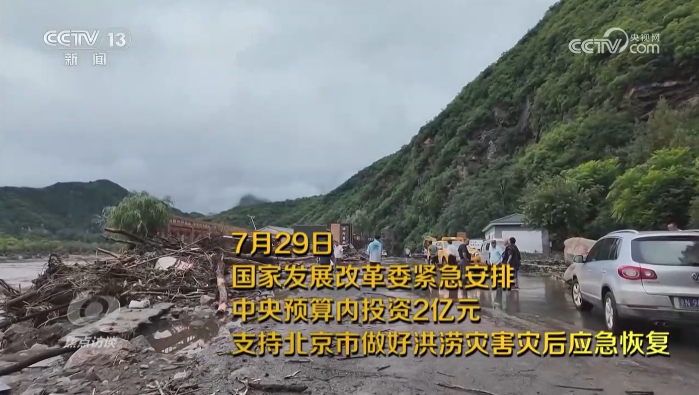 應急管理部救災和物資保障司副司長王一鳴:“財政部、應急管理部緊急預撥3.5億元中央自然災害救災資金,重點支持河北、天津、北京等九個省區市做好搶險救災和羣眾救助工作。應急管理部也會同國家糧食和物資儲備局增調了摺疊牀、毛巾被、毛毯、應急照明燈等4.3萬件中央救災物資,會同中國紅十字會,向災區援助了2000套的家庭應急箱。”