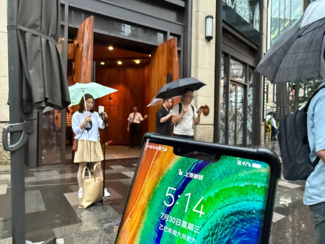 7月30日17時許,記者到達LV“巨輪”所在地石門一路,發現現場秩序井然,LV“巨輪”、臨近的星巴克烘焙坊、興業太古匯商場等均正常營業,周邊道路未見明顯積水,車輛通行順暢。