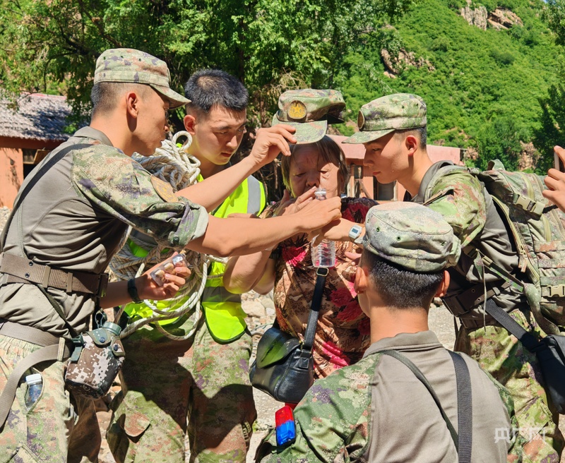 其中,一位患病老人在暴雨中不慎摔倒,導致手腕、腳腕骨折,無法獨立行走,在幾位村民的攙扶下才慢慢挪過來——她嘴唇泛白、嘴角止不住地顫抖,隨身攜帶的包裏裝着治冠心病的藥。見狀,救援人員迅速支起擔架,託着老人背部和腿部輕放上去,有人用帽子為老人扇風,有人俯身幫她擰開瓶蓋,遞上礦泉水説:“您慢些吞,我們穩穩把您送出去。”