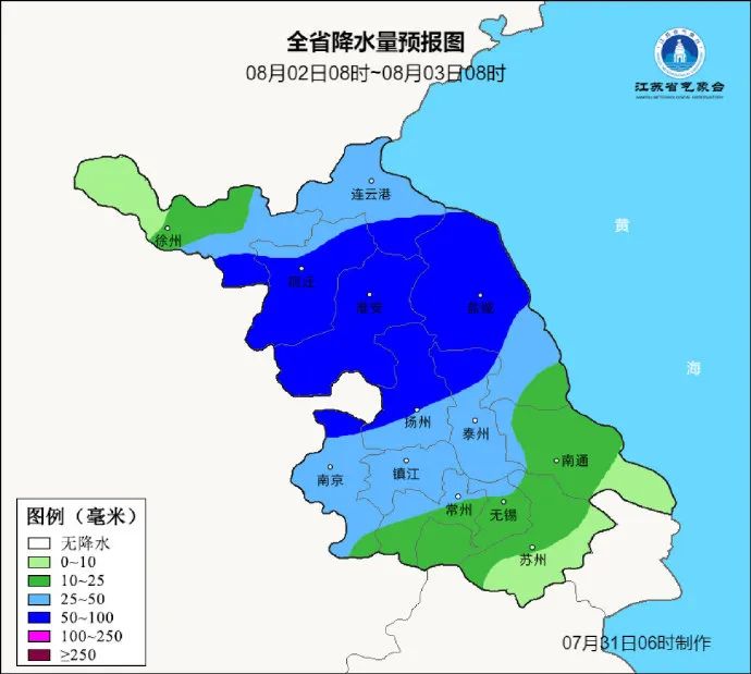 江蘇大部分地區有較強風雨