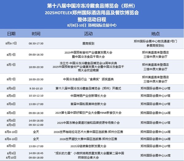 2025年8月8日至10日,2025HOTELEX鄭州國際酒店用品及餐飲博覽會和第十八屆中國冷凍冷藏食品博覽會將在鄭州國際會展中心盛大開幕。