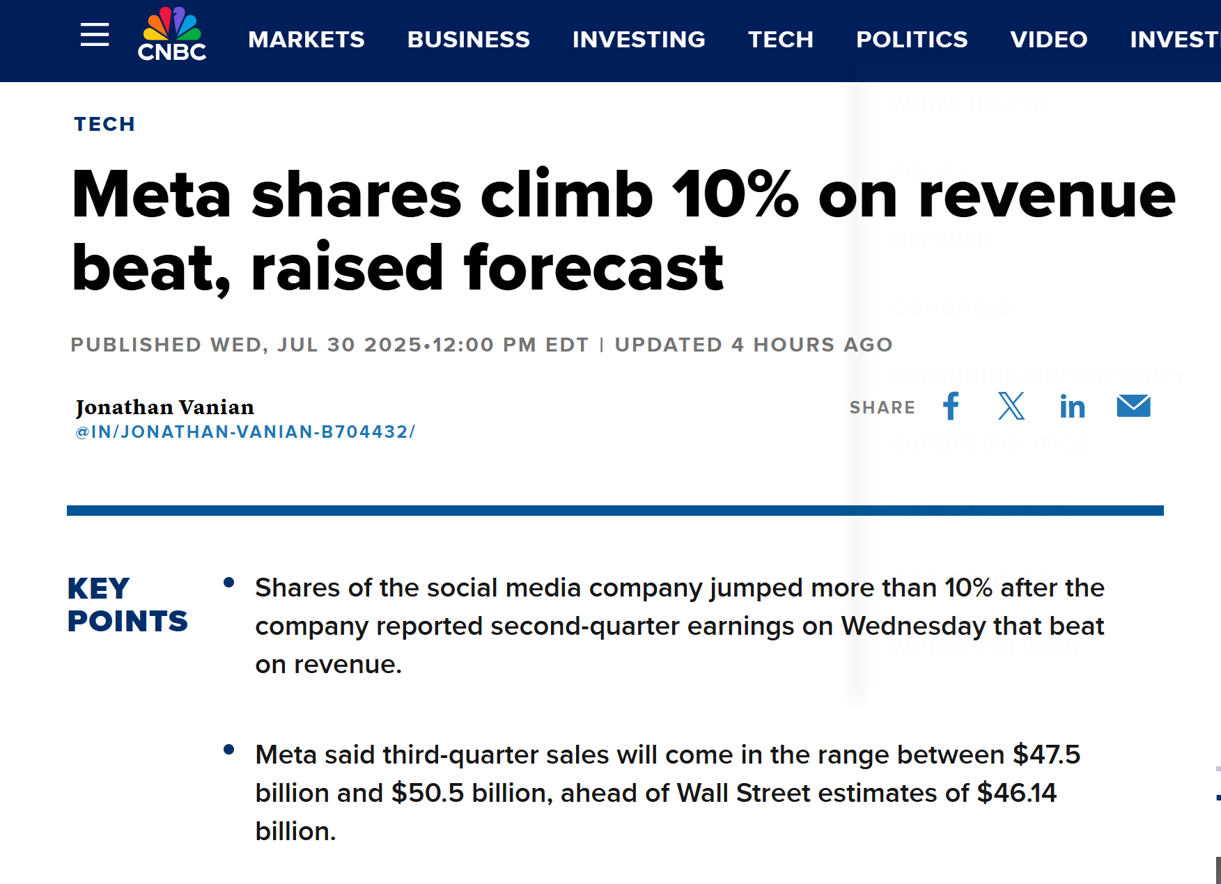 Meta公佈2025Q2財報:營收475.2億美元,同比增22%