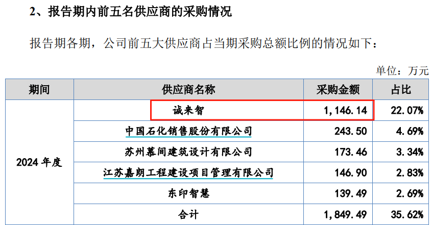 不僅如此,蘇州誠來智投資管理有限公司是中誠諮詢董事、實際控制人許學雷持股90%的企業,因此也是中誠諮詢的關聯方,同時還是中誠諮詢的第一大供應商。對此,招股書第230頁詳細披露了公司與該關聯方的採購交易,主要圍繞物業管理及服務項目,但是該部分信息披露對應的關聯採購金額,卻與招股書第175頁披露的“報告期內前五名供應商的採購情況”存在較大差異。