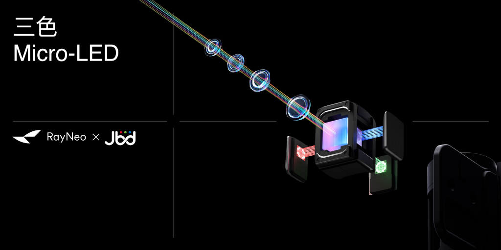 光學顯示是眼鏡產品最核心的技術,它決定了眼鏡的人機交互、成本和形態。有行業人士透露,這部分成本約佔整機的43%,佔比最大。而在諸多個方案中,彩色MicroLED+光波導方案無疑是技術棧最高、也是最被認可的“終極方案”。李宏偉介紹,“這方面是雷鳥從一開始就選擇了正確的方向,我們做了長時間的積累和突破。”最新發布的雷鳥X3 Pro AR眼鏡搭載全球最小可量產全綵螢火光引擎,以及與應用材料聯合研發的納米光刻蝕RayNeo光波導,可以實現43英寸全綵3D空中透明屏顯示效果。