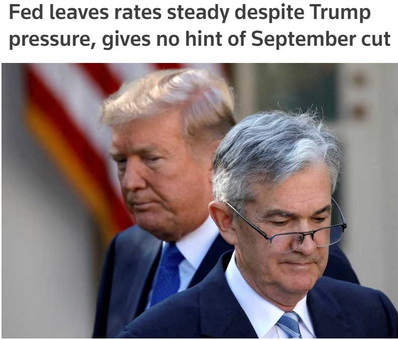 美聯儲主席鮑威爾在當天舉行的記者會上表示,實施適度約束性的貨幣政策看起來是合適的。他説,美聯儲尚未就9月份貨幣政策作出決定,這取決於下一次議息會議前公佈的就業和通脹等數據。
