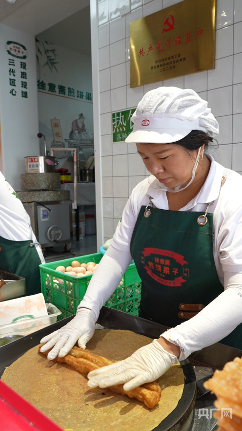 商户正在製作煎餅餜子(央廣網記者 周思楊 攝)