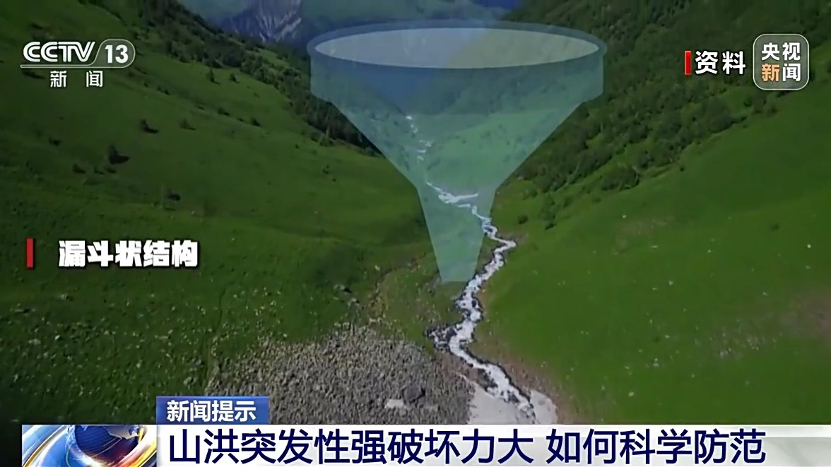 山區地形則進一步“放大”了這一風險,由於山地多呈漏斗狀結構,降雨在重力作用下迅速順坡下泄,遠不像平原那樣有充足的蓄水與緩流空間。短小的河道,狹窄的V形溝谷,以及集中落差,使得雨水匯流極快,洪峯迅猛抬升,給預警與避險帶來極大挑戰。