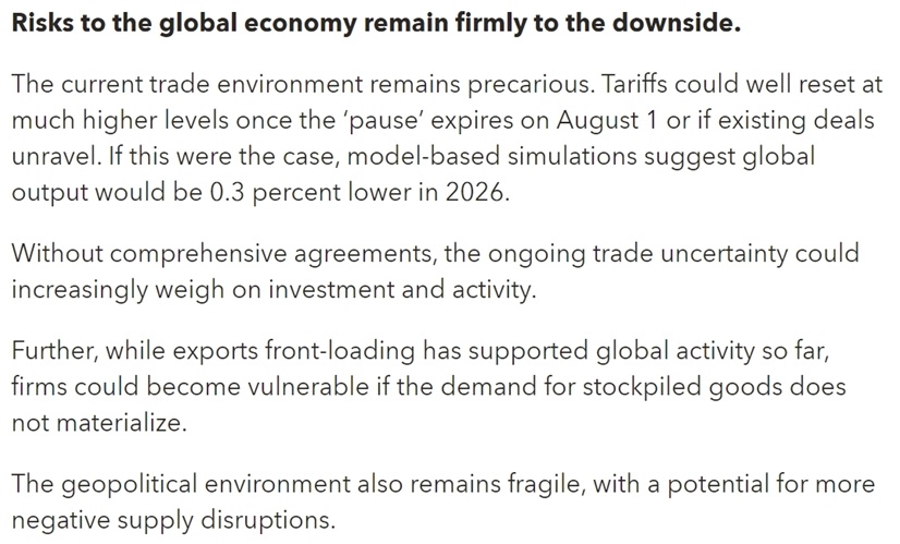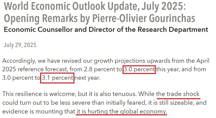 在關税的陰影下,這一調整似乎給世界經濟帶來一抹亮色,但IMF的態度難言樂觀。