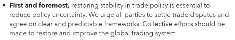 IMF強調,各經濟體務實合作至關重要,應致力於減少貿易和投資壁壘。但時至今日,世界經濟最大的不確定性來源,也就是美國挑起的關税戰並沒有出現絲毫收手的跡象。