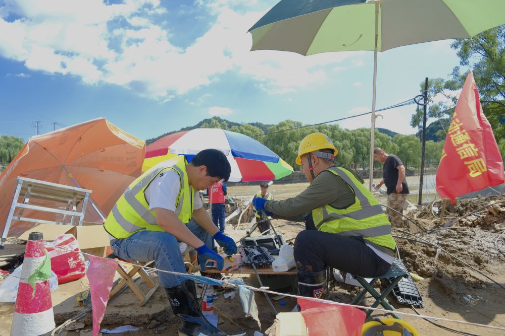 中國電信的工作人員正在現場工作。 新華社記者 張宇琪 攝