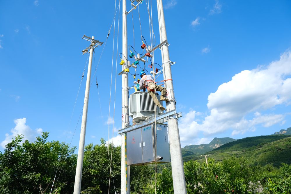 下營鎮石炮溝村電力工人正在搶修變壓器。新華社記者 張宇琪 攝