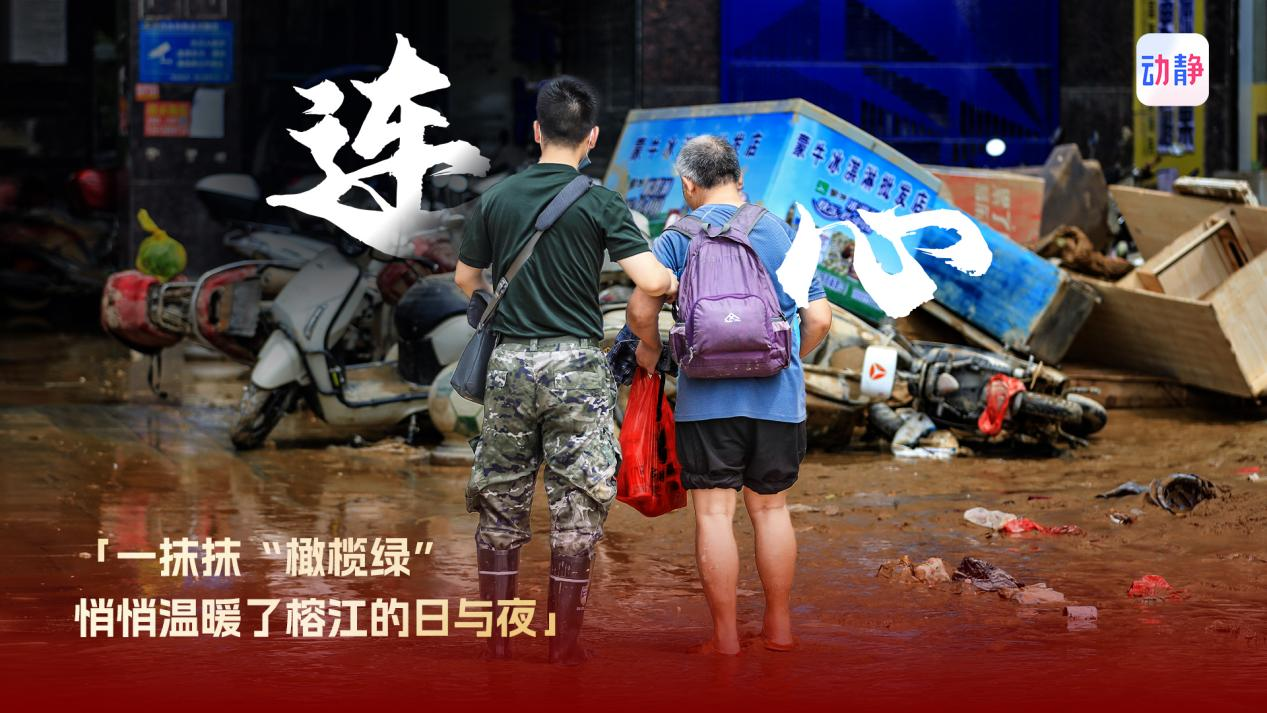 就在這兩場洪水的縫隙裏,一抹抹“橄欖綠”融進了榕江的日與夜。武警貴州總隊的千餘名官兵快速集結,帶着救生衣、衝鋒舟,還有轟鳴的挖掘機、推土機,在濃稠夜色裏駛向最危險的低窪地帶……