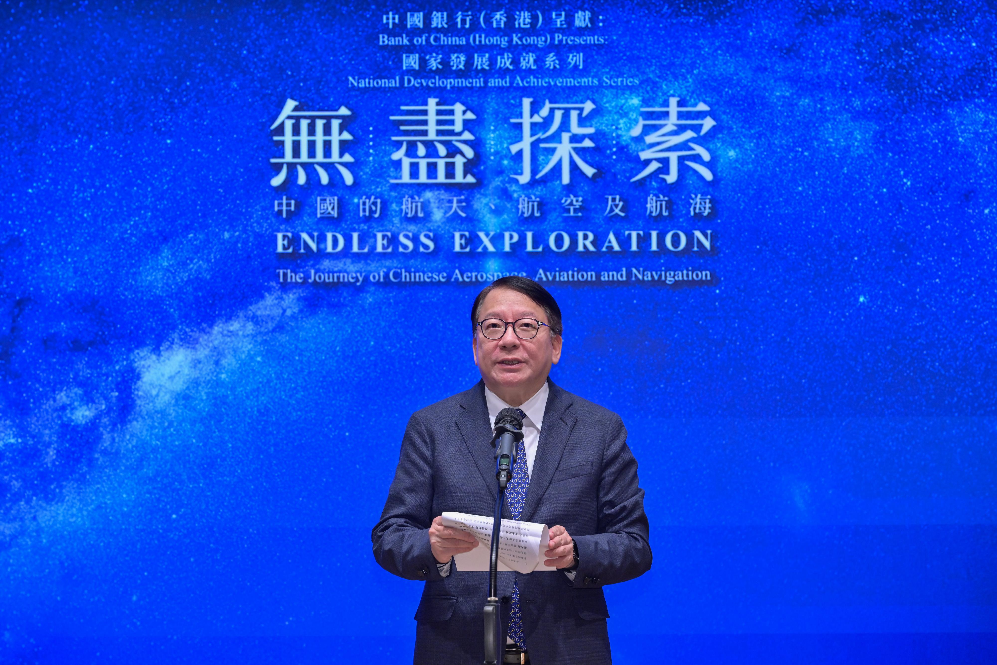 7月31日,由中國國家航天局與香港特別行政區政府聯合主辦的“無盡探索:中國的航天、航空及航海”展覽在香港科學館開幕。本次展覽旨在全方位展示我國在航天、航空、航海領域取得的最新成就,激發香港公眾特別是青少年對科技創新的熱情,助推香港科技創新能力不斷攀升。中國國家航天局總工程師李國平、香港特別行政區政務司司長陳國基出席開幕典禮並致辭。