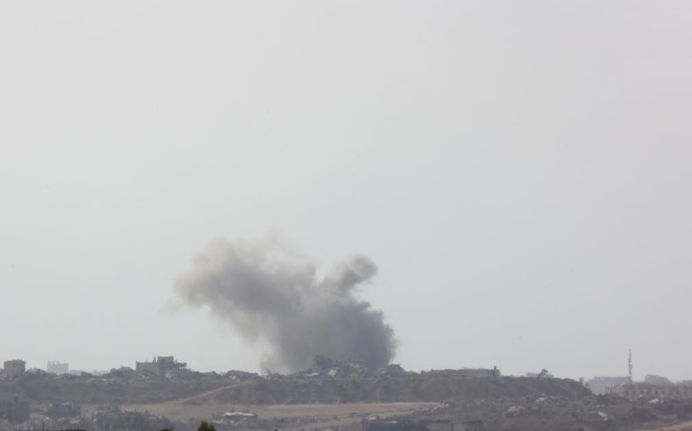 這是7月29日從以色列一側拍攝的加沙地帶遭襲後升起濃煙。新華社發(吉爾·科恩·馬根攝)