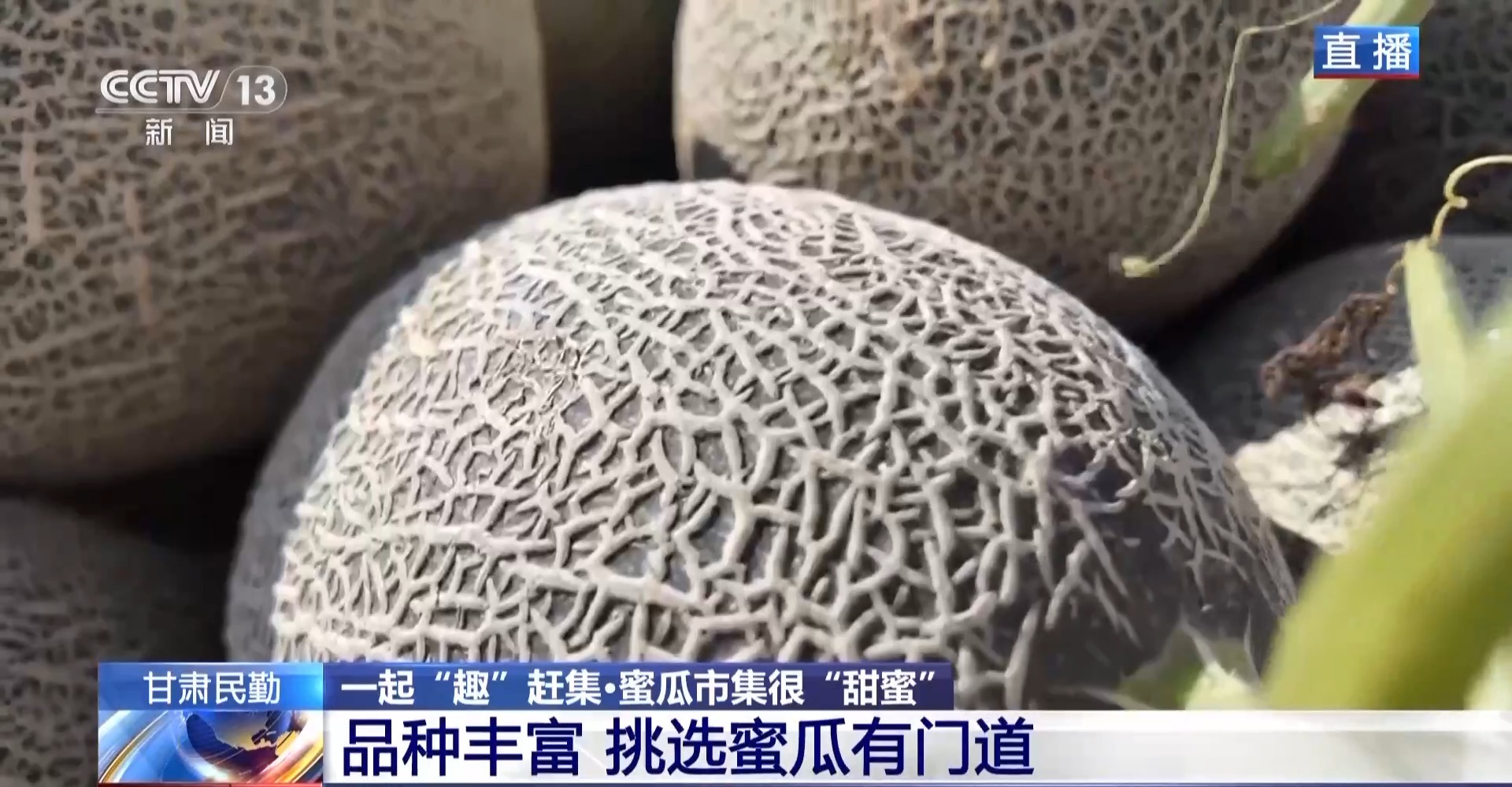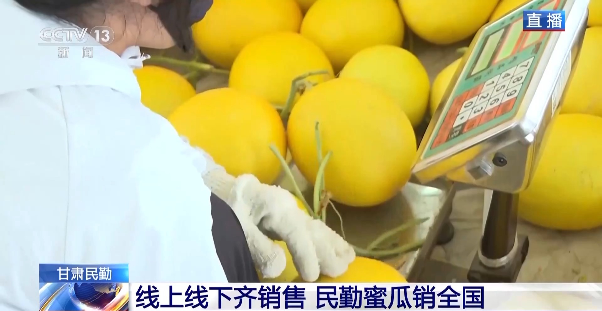 *總枱記者 馬麗:*藉助蜜瓜產業,當地也衍生出了專業驗瓜人、物流工人、網絡主播等多種職業。每年蜜瓜成熟季,外地客商來到民勤,也帶動了本地的餐飲、住宿和其他消費。今年,民勤全縣的蜜瓜種植面積達16萬餘畝,預計總產量51萬噸。可以説,蜜瓜產業現在已成為本地百姓增收致富的一項支柱產業,“甜蜜”經濟也讓大家的日子越過越好。