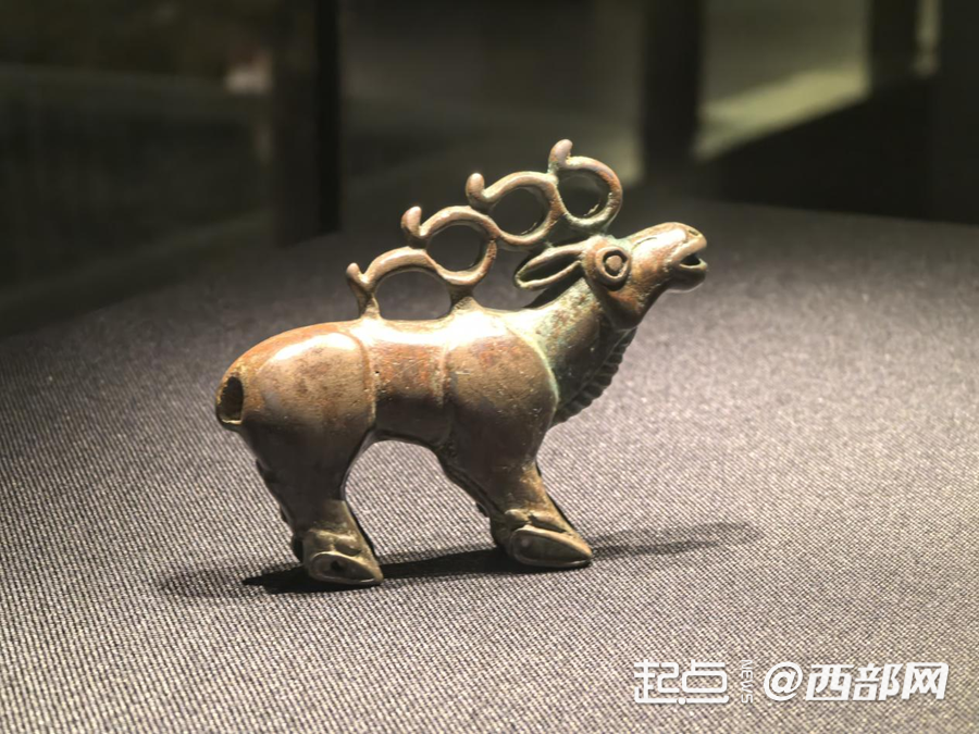 在張掖博物館,擺放於獨立展櫃中的青銅大角鹿,吸引了許多遊客駐足停留,拍照留念。這種器物曾流行於亞歐大陸中部的阿爾泰、西伯利亞地區。這説明在距今3000-4000多年前,就有一支從西方遷移過來的族羣,選擇在張掖安居樂業。