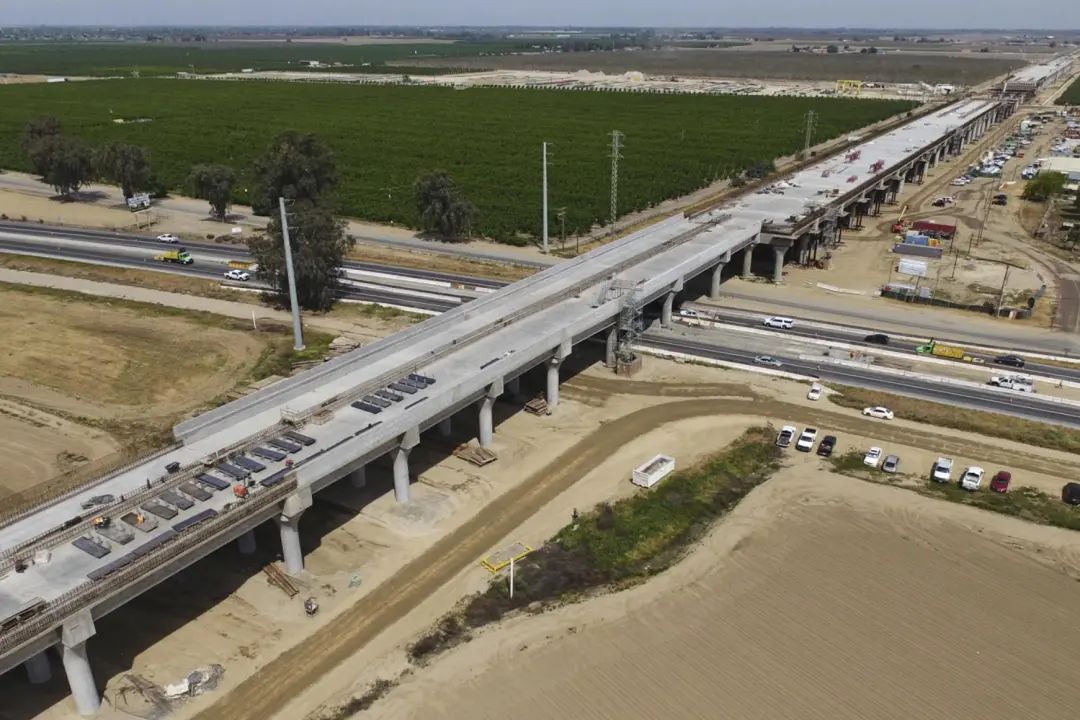 2025年4月,美國加州高鐵項目,金斯縣鐵路高架橋建設工地。(圖源:美聯社)