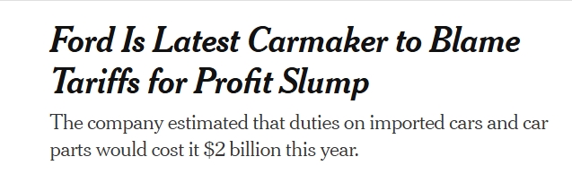 美國其他本土車企同樣未能倖免。據美國有線新聞網絡“新聞國家”(NewsNation)報道,美國最大的汽車公司通用汽車第二季度利潤驟降三分之一,導致虧損超過10億美元,公司明確將虧損歸因於關税。