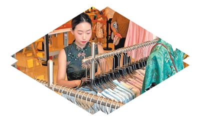 顧客侯女士和母親在店裏逛了半個多小時,選購了兩件旗袍和一件中式上衣,心滿意足。“大多適合日常穿着。”付款後,侯女士又來到店裏的剪裁區,希望將旗袍的腰部稍作收緊。工作人員免費現場裁改,不到半個小時,侯女士就拿到了更加合身的旗袍。