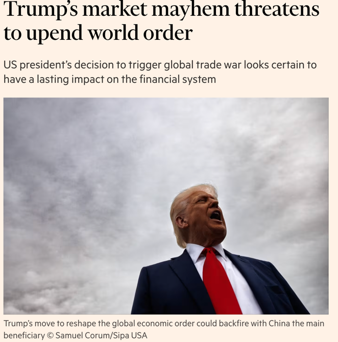 △《金融時報》刊文,認為特朗普的新一輪廣泛關税政策正加劇全球經濟碎片化,削弱多邊機構(如IMF、WTO)的約束力,使全球體系更依賴國家實力而非規則。