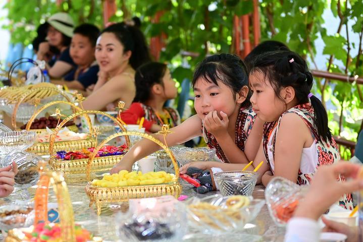 遊客在新疆伊犁哈薩克自治州伊寧市伊犁老城喀贊其文化旅遊區家訪點品嚐當地美食(7月23日攝)。新華社記者 丁磊 攝