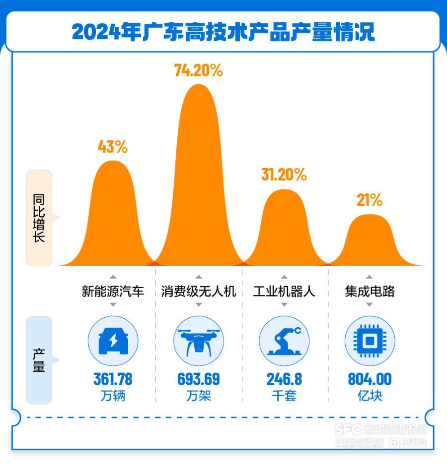 從數據看,上半年廣東高技術產品的產量都實現了快速增長,其中儲能用鋰離子電池、工業機器人、服務機器人、民用無人機產品產量分別增長42.2%、34.0%、23.0%、58.2%。