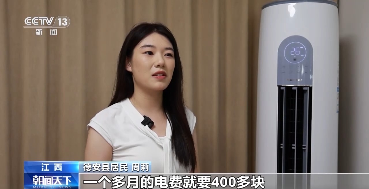 *江西省德安縣居民 周莉:*以前夏天開空調,一個多月的話,電費就要400多塊,自從換了新空調之後,上個月電費才200多塊錢,一下子節省了快一半的錢。