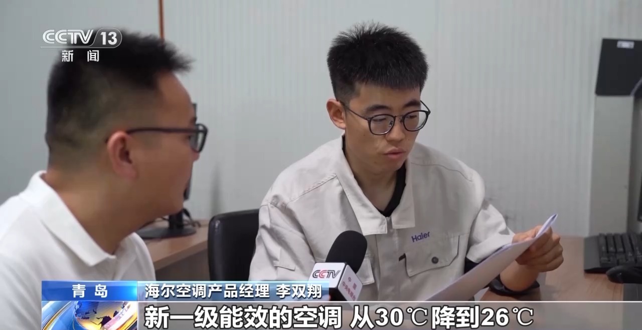 *海爾空調產品經理 李雙翔:*新一級能效的空調,從30℃降到26℃用時是44分鐘,耗電量是1度。老空調用時是8個小時,耗電量是5度。