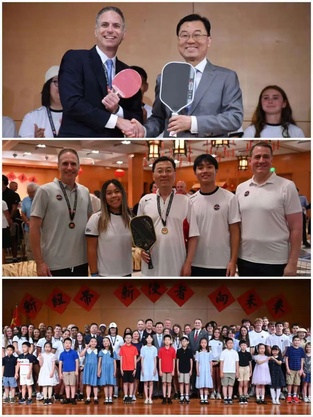 謝鋒表示,半個多世紀前,“乒乓外交”叩開中美交往大門,兩國人民的真誠願望讓中美打破堅冰。今天,匹克球運動架起中美交流新橋,兩國人民的友好互動為中美關係再添暖意。中美關係又站在一個關鍵歷史節點,這個“大球”仍需許多“小球”來推動,未來仍要由兩國人民來創造。