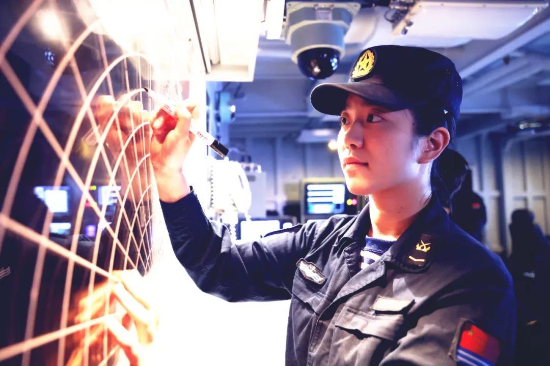 下士黃韓琦今年25歲,是紹興艦電子對抗兵。她的戰位,需要隨時上報可疑敵情的參數,時刻記錄對方的電子頻譜特徵……談到工作時的感受,她的言語中充滿了責任感:“必須分秒必爭,哪怕能在一個環節快零點一秒,也許就把握住了決定勝負的時機。”