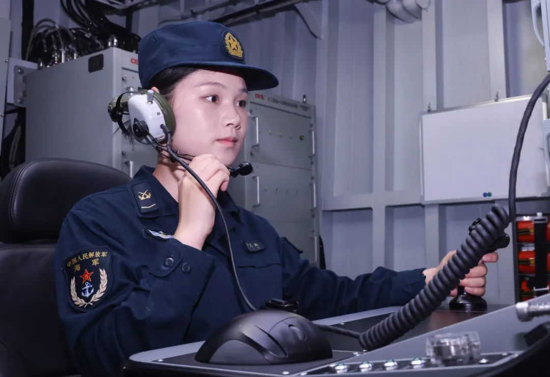紹興艦中士林娜娜來自江西,是一名指控兵。在海軍學兵連時,她最初學習報務專業。此後,她又學習對潛通信專業,並被分配到東部戰區海軍某通信團。之後她選擇考學,進入海軍士官學校學習艦艇指控專業。在紹興艦上,林娜娜開啓了戰鬥的青春:“最開始與外軍艦機在大洋上碰面,我更多的是緊張。現在,我越來越自信了。”