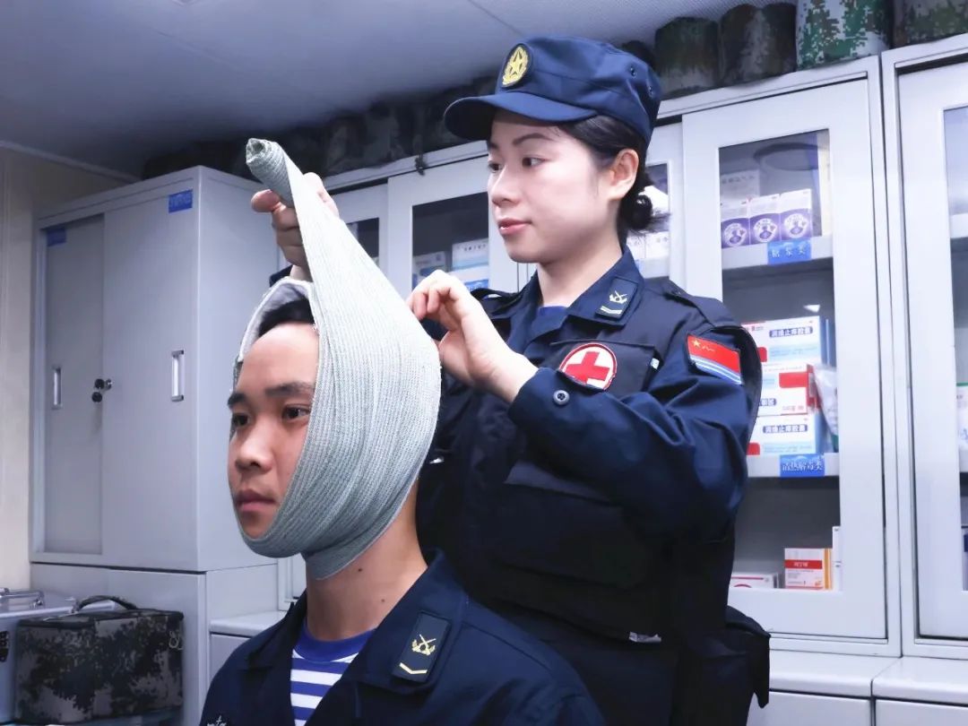 二級上士餘晨婕是紹興艦衞生員,她曾在多艘艦艇上服役。2020年,她向上級提出了加入紹興艦接艦部隊的申請,並通過了考核。如今在紹興艦上,餘晨婕肩背藥箱守護官兵健康,走進艙室防疫消毒。她也在部隊找到了伴侶,夫妻倆分別戰鬥在兩艘戰艦上。
