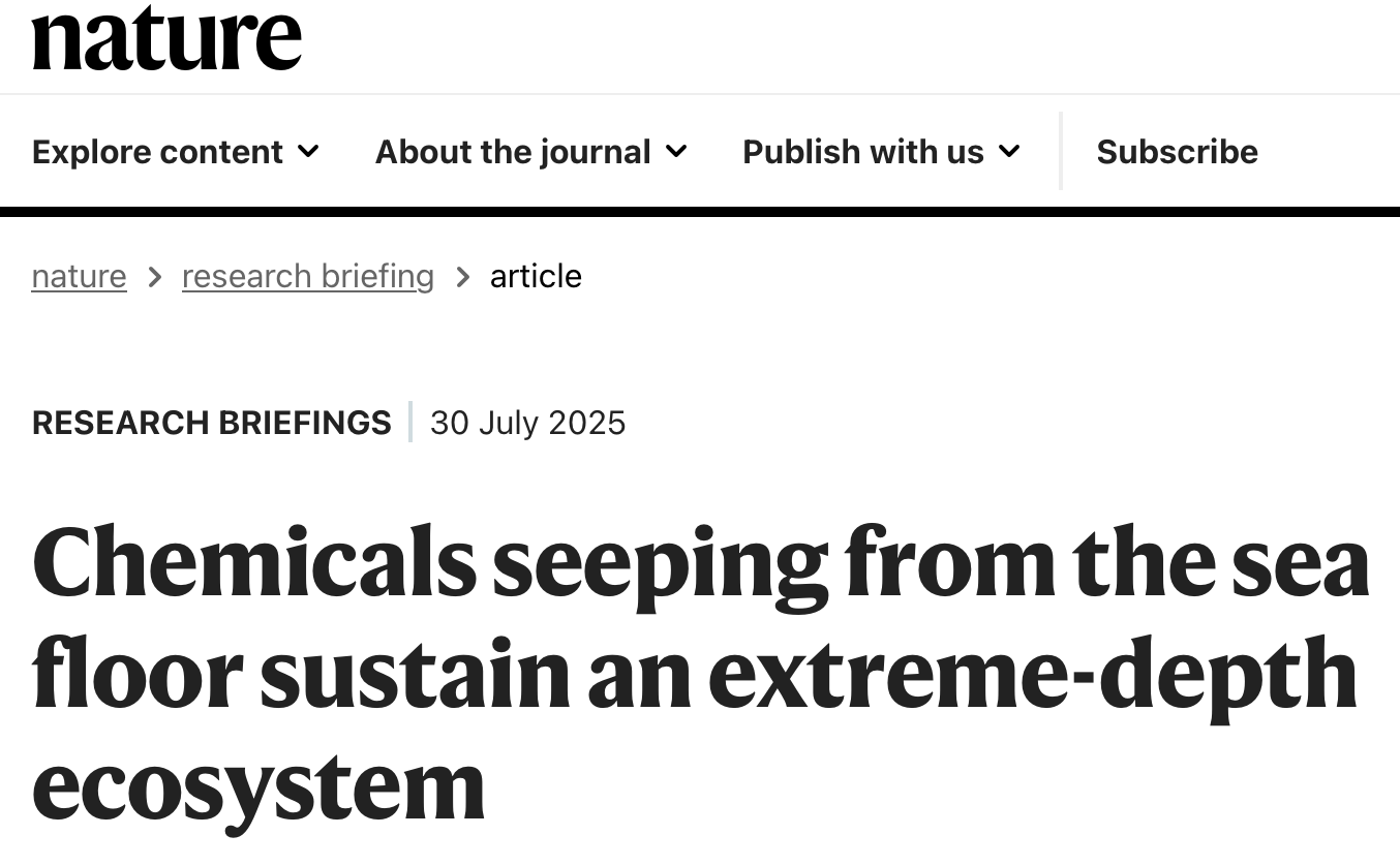 科學家發現截至目前最深的化能合成生態系統和甲烷儲庫