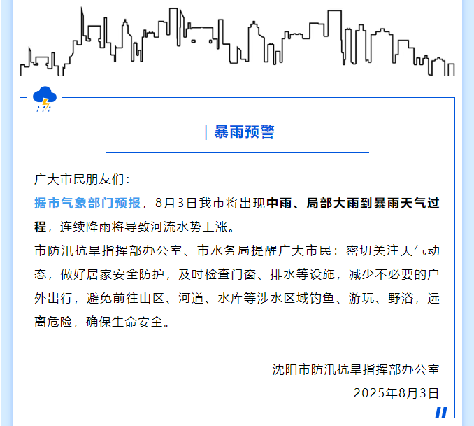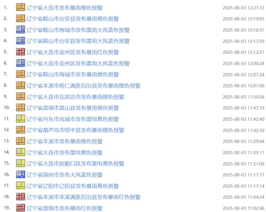 8月3日11時至8月3日20時,本溪市、丹東市等部分地區地質災害氣象風險預警等級為三級(黃色預警),氣象因素致地質災害發生的風險較高,請注意防範。