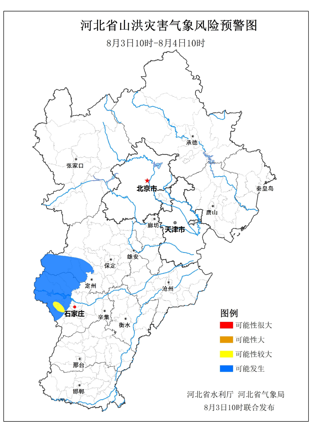 河北省水利廳和河北省氣象局8月3日10時聯合發佈山洪災害氣象風險預警: