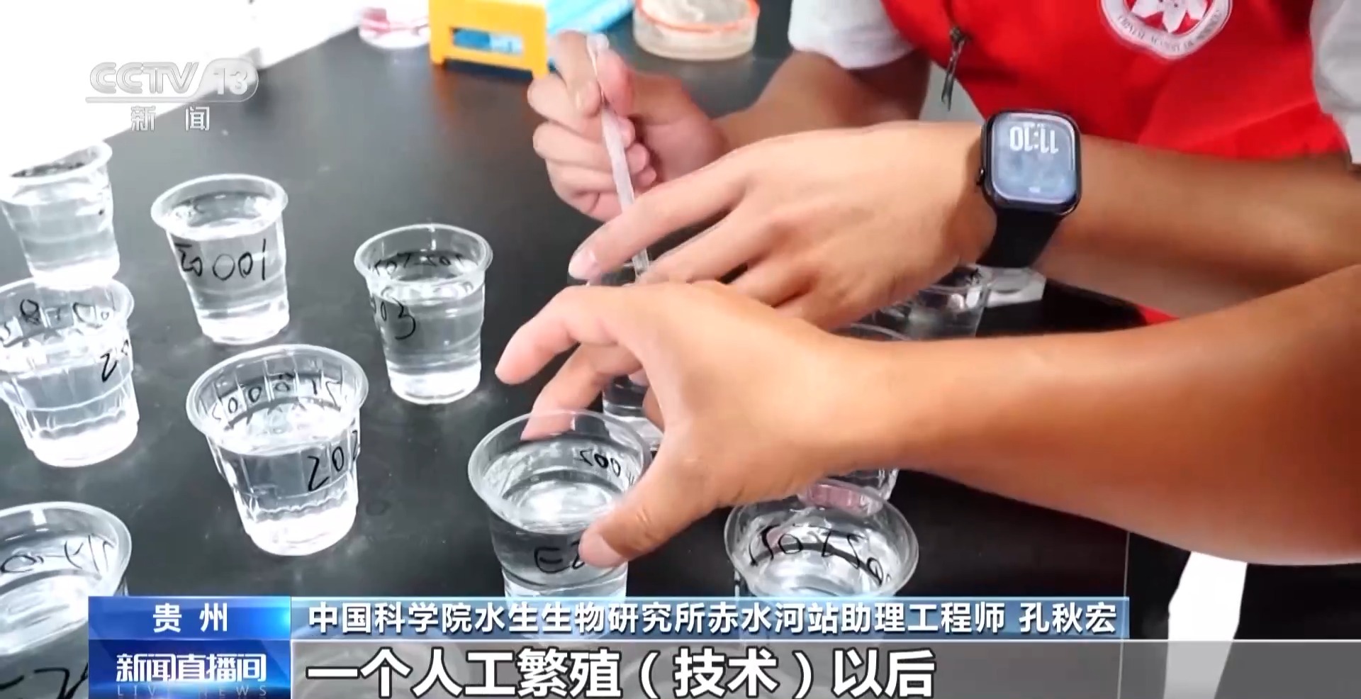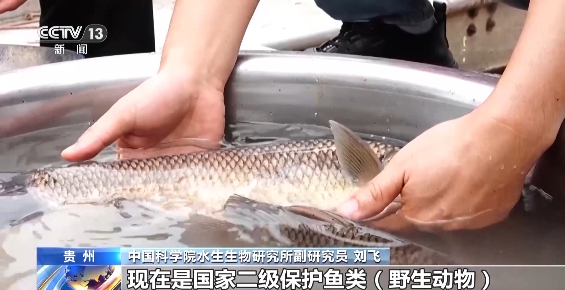 *中國科學院水生生物研究所赤水河站助理工程師 孔秋宏:*我們突破了這些珍稀特有魚類的人工繁殖技術以後,批量性地生產繁育一些魚類。然後針對它野外種羣比較少的一些珍稀特有魚類,進行增殖放流,達到恢復野外種羣重建的目的,更好地保護這些珍稀特有魚類。