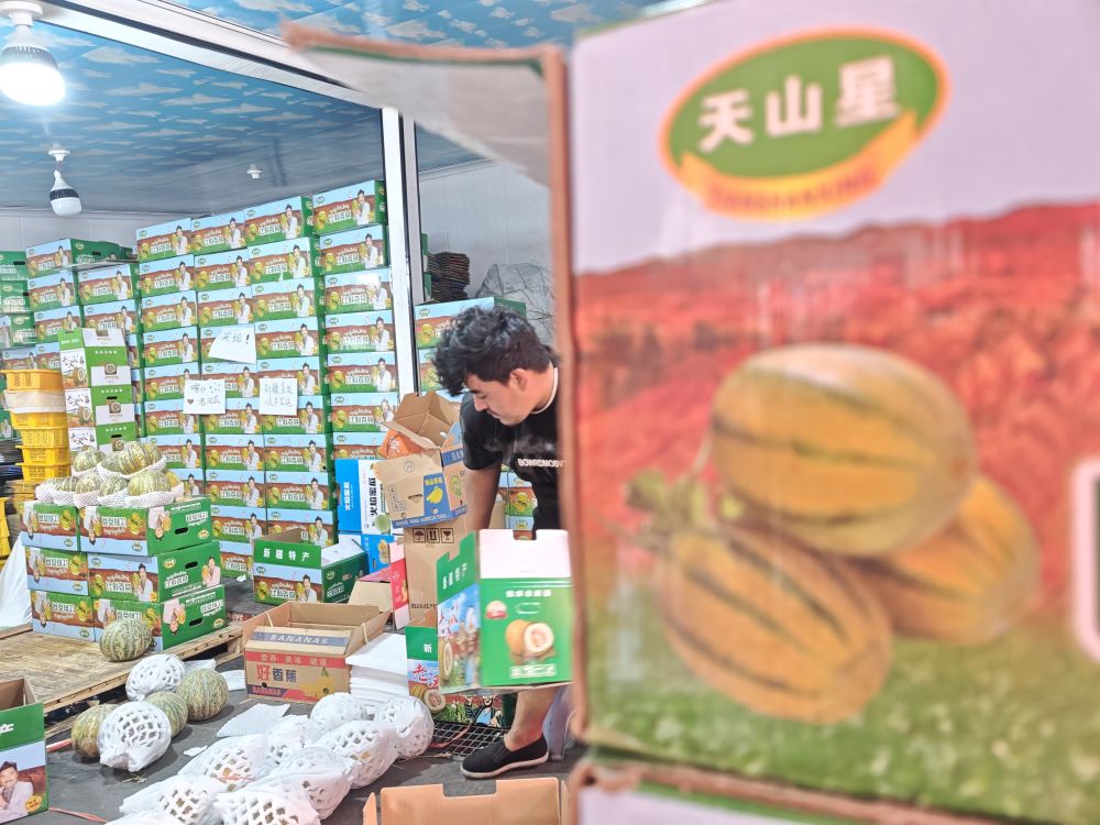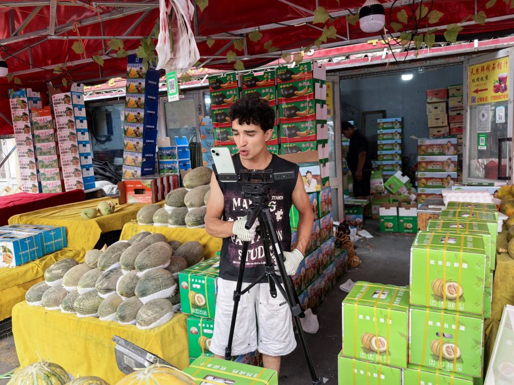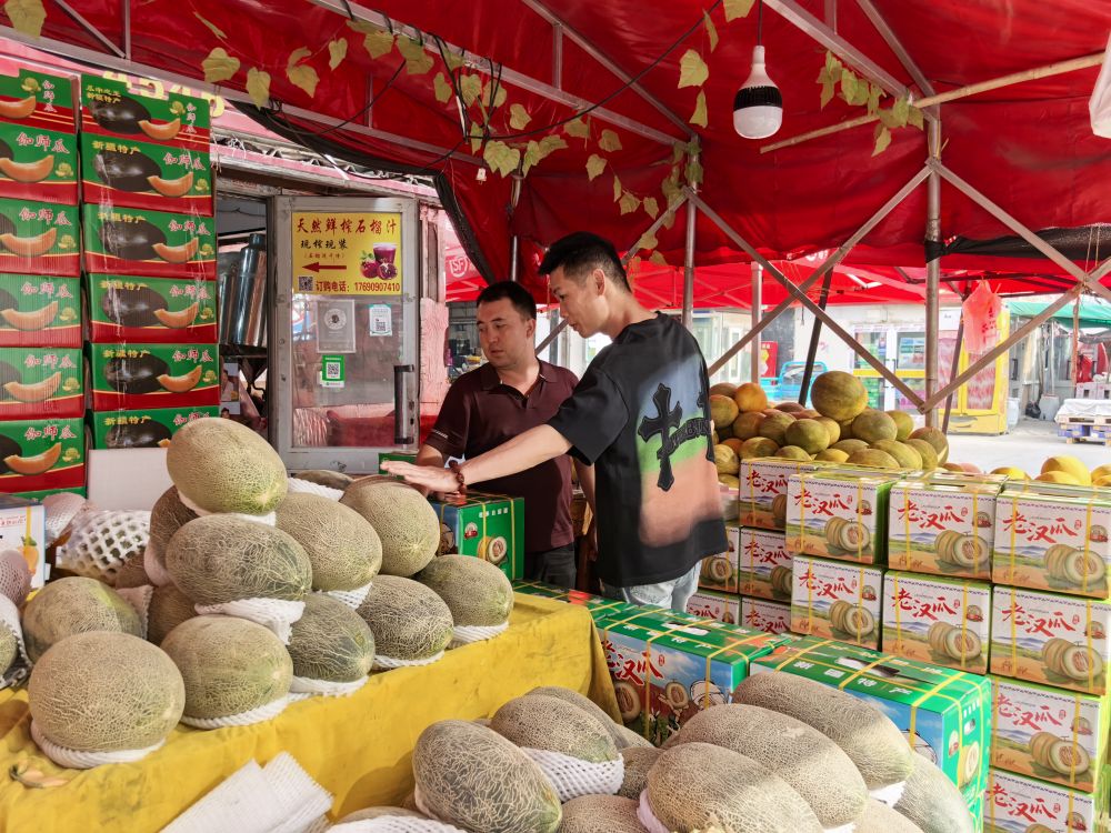 而如今,通過阿卜杜拉兄弟這樣的直播間,新疆老漢瓜正搭乘“飛的”奔赴全國各個城市。兄弟倆的水果店裏,老漢瓜今夏上市以來生意持續火爆,日均訂單150多單,單品日銷售額接近兩萬元。
