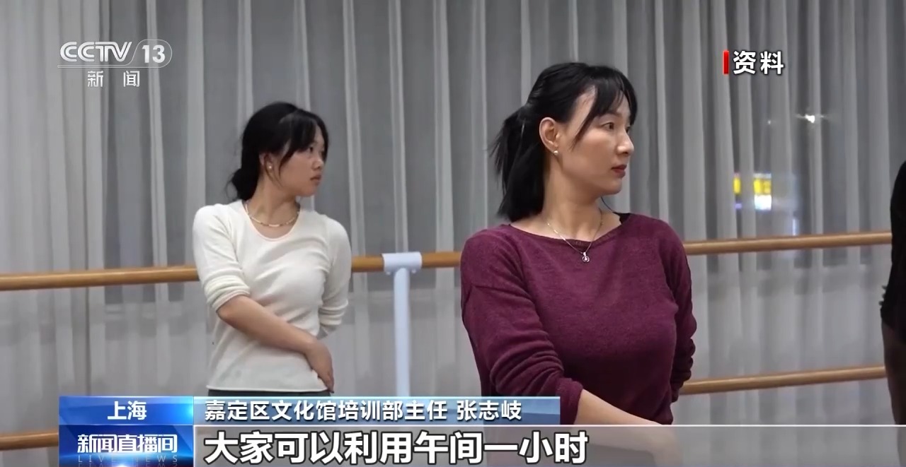 嘉定區文化館培訓部主任 張志岐:課程設置豐富多樣,一共開設七門課程,大家可以利用午間一小時或下午的時間進行學習,包括舞蹈、演唱、腰腹塑形等等,滿足市民在藝術修養和健康塑形方面的不同需求。