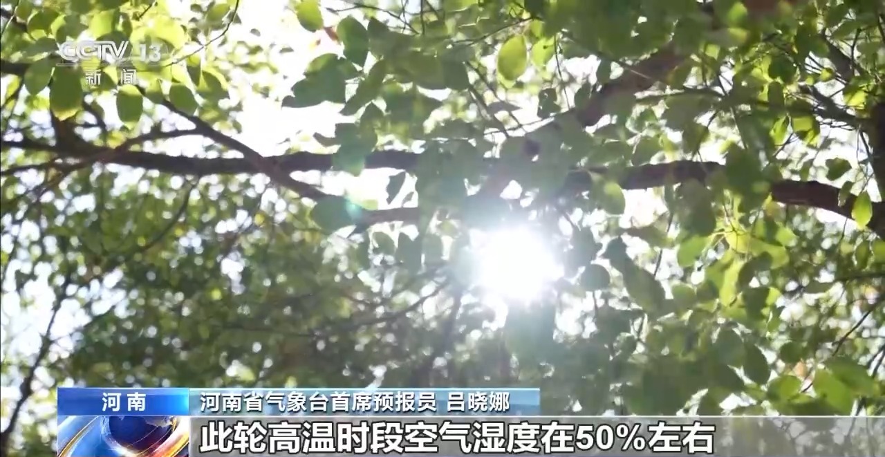 河南受高壓帶控制,空氣下沉增温和晴空輻射,導致此次高温天氣。此次高温時段空氣濕度在50%左右,體感比較悶熱。
